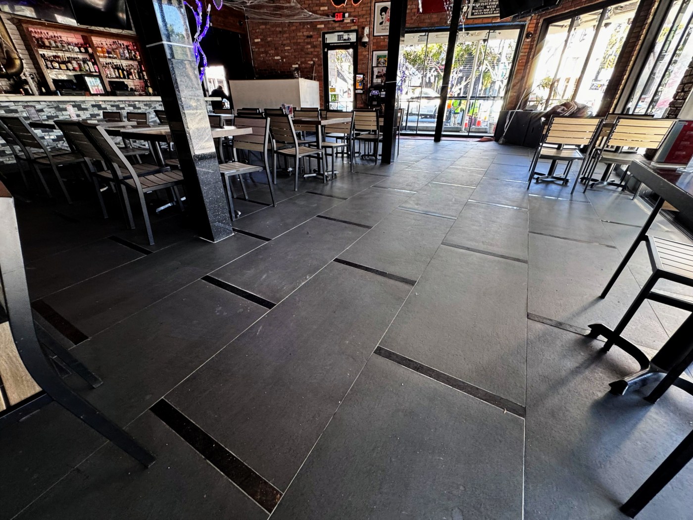 Custom Finishes: The team installed intricate custom tile work on floors and walls, complemented by sophisticated granite column finishes that add a layer of luxury to the industrial-chic space.